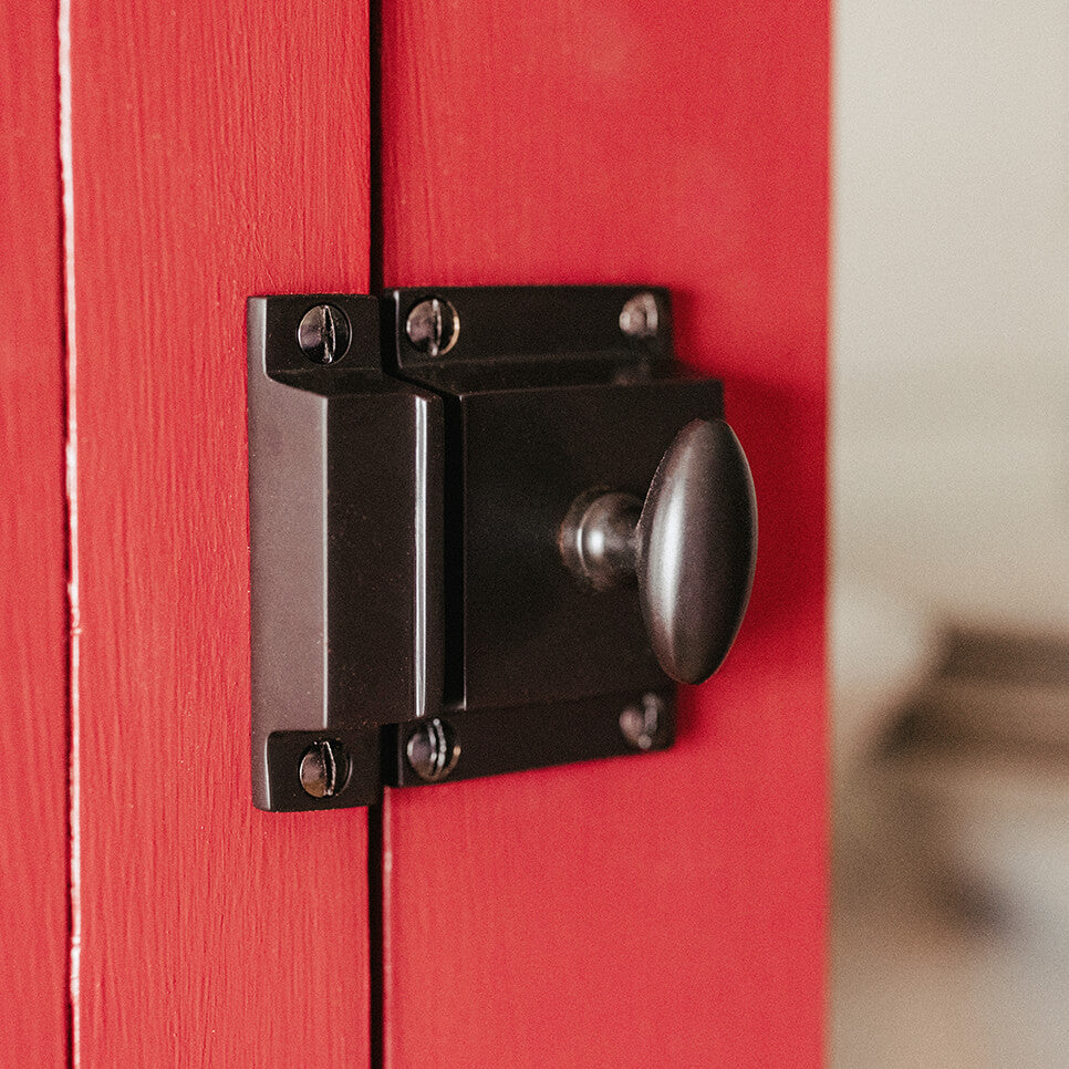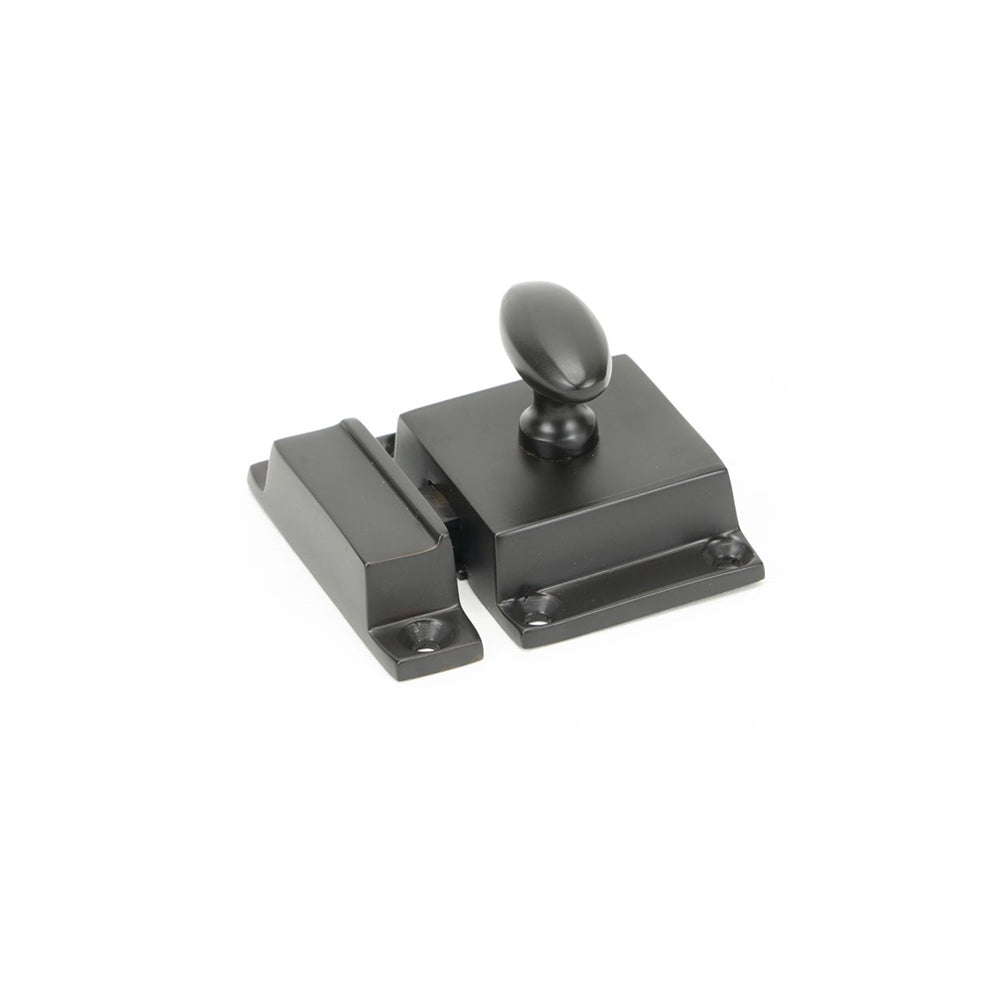 Sprung cabinet latch that is finished in a rich aged bronze. The oval turning knob is tactile and easy to use. Ideal for wardrobe and kitchen cupboard doors.