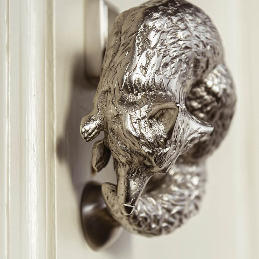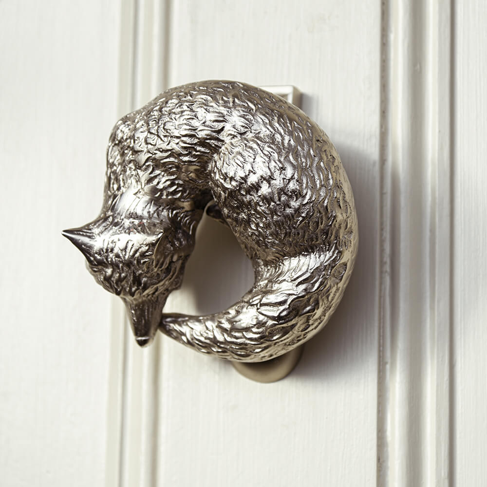 Our stunning silver fox door knocker is designed with the fox curled up in a sleeping position, so the tail acts as a handhold for the knocker.