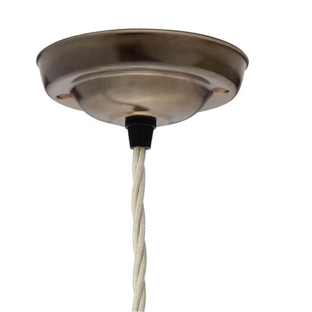 Suspended from a twisted linen flex this light has traditional charm.