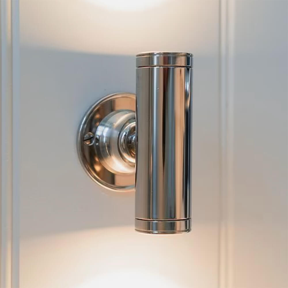 A small architectural up and down wall light designed for reliable outdoor use. Crafted from stainless steel, offering a sophisticated understated finish.