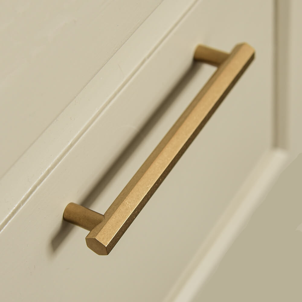 Beautiful pull handle crafted in a hexagonal design from solid brass with a soft aged finish that is hand applied. Ideal for drawers or cupboards and can be used horizontally or vertically.
