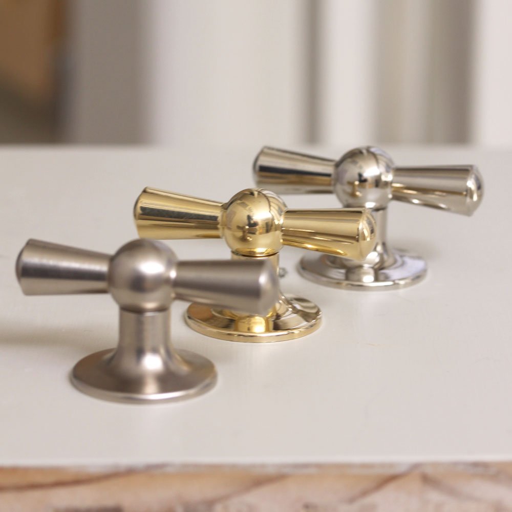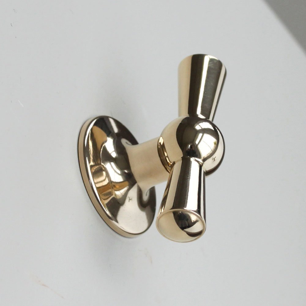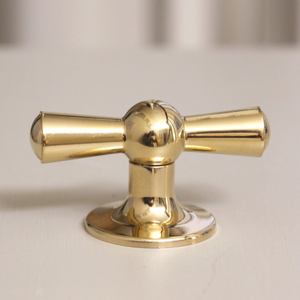 Superb design! A T bar cupboard knob or drawer pull in solid brass with a polished unlaquered finish. Would look stunning used vertically or horizontally on kitchen drawers or cabinets. Hand made in the UK this solid cupboard knob is tactile and weighty.