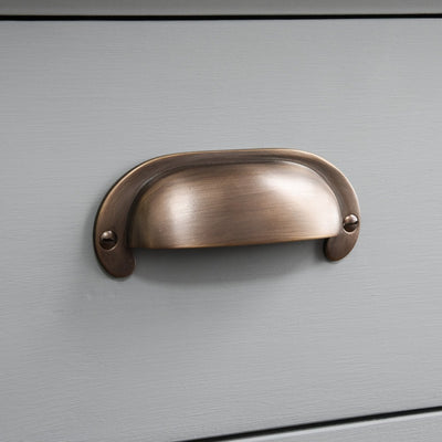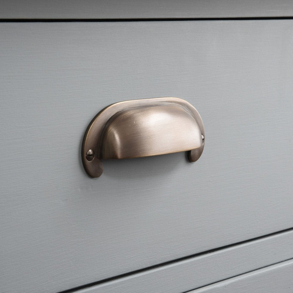 Distressed Antique Brass Large Curved Hooded Drawer Handle