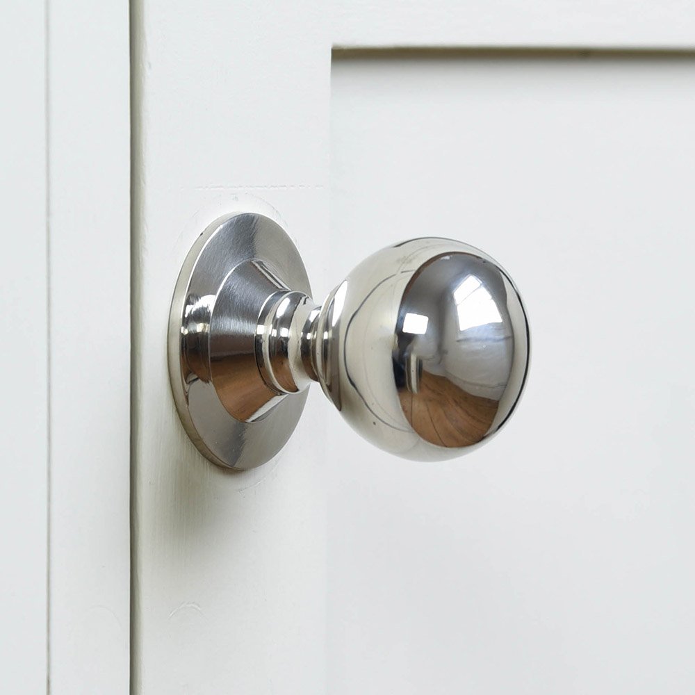 Weighty ball shaped cabinet knobs with a removable backplate. This cabinet knob is available in two sizes and has been designed to compliment our ball shaped door knobs from the same range. The larger size is a great option for wardrobes or under stair cupboards where a larger handle is required.