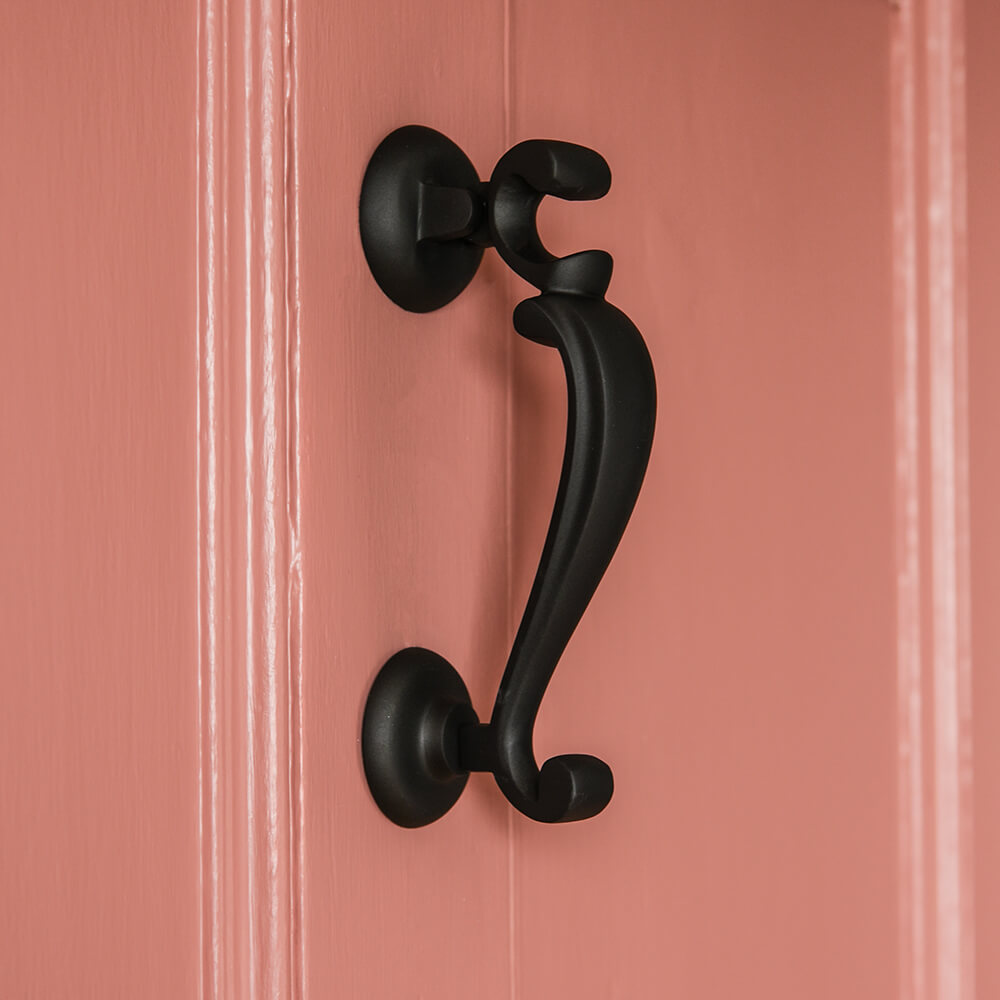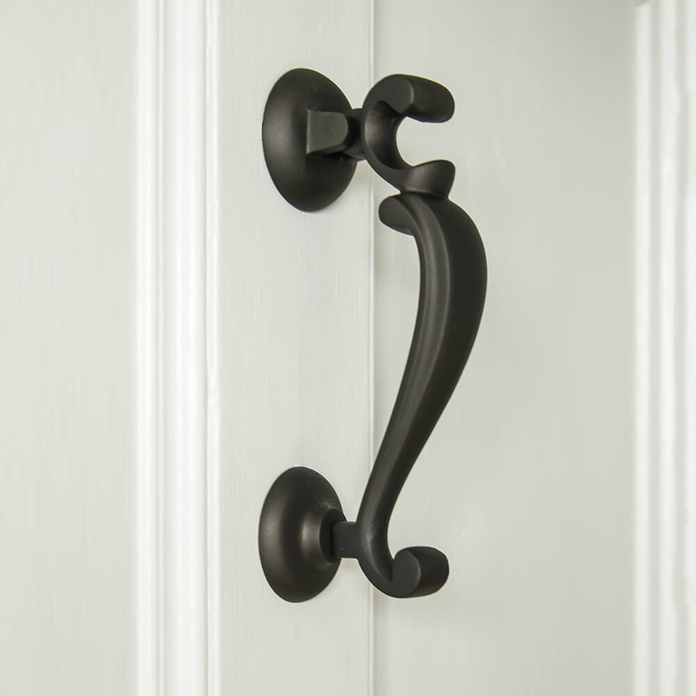 Stunning front door knocker that is inspired by the early Georgian doctors door knocker, such named as it was used to identify the door of the doctors house. This classic design is crafted from solid brass and finished in a smooth matte black that is cured in an oven for extra protection and durability.
