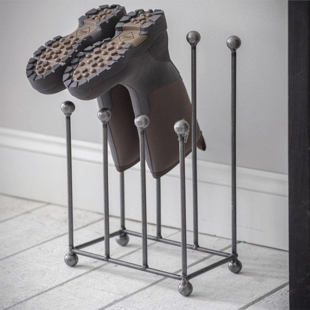 Keep your porch, hallway or boot room tidy with this robust steel wellington boot rack. Can hold up to four pairs of boots and designed so the larger boots sit on the back row and the smaller at the front.