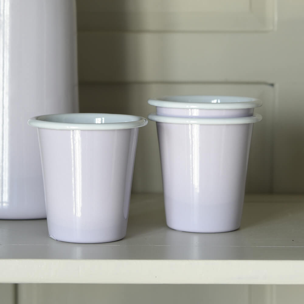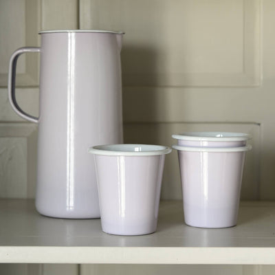 Stylish enamel tumbler that is finished in a lovely soft lilac with white interior. Easy to stack together making them ideal for picnics or days in the garden. Also available in a matching 3 pint jug. Sold individually.