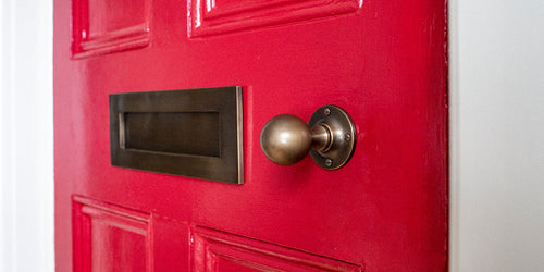 High quality and weighty polished nickel fittings to suit modern and traditional homes on a classic red front door.