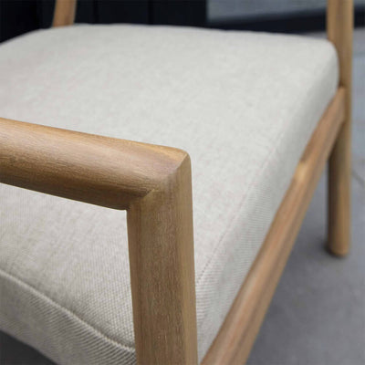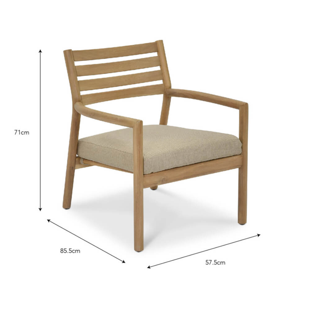 Stylish wooden armchair with firm padded seat, backrest and arms. Crafted from FSC acacia wood and a removable padded cushion and washable cover. Perfect for spending a relaxing afternoon in the garden.