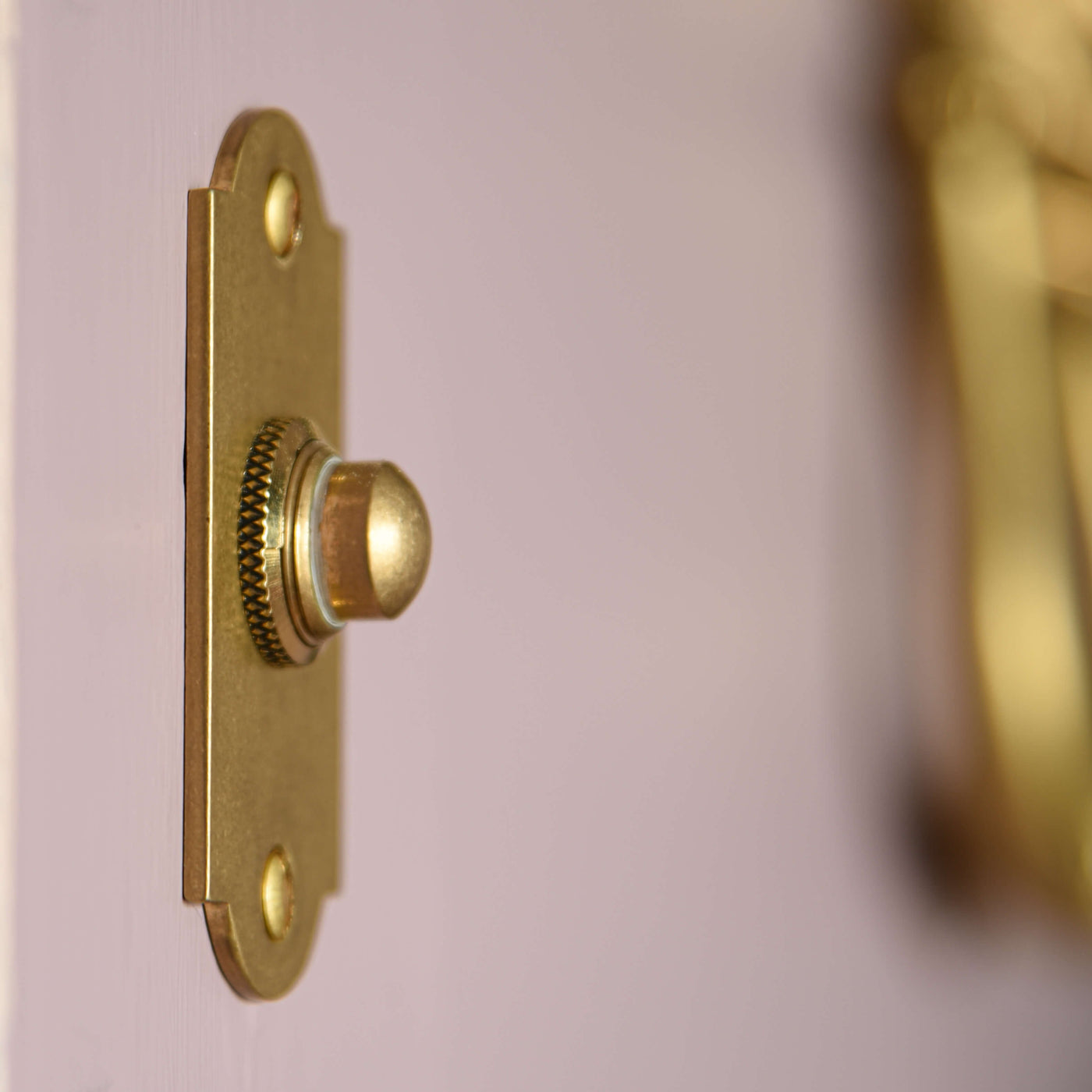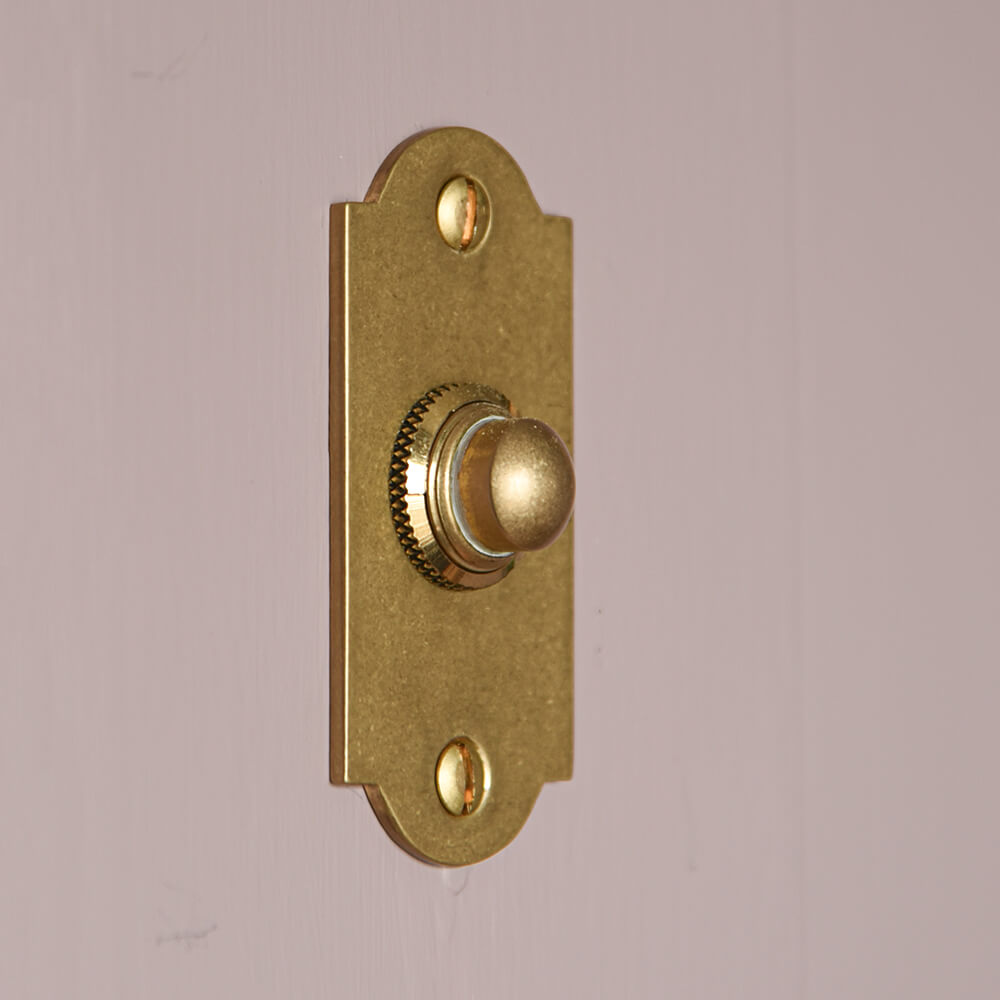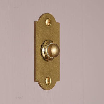Elegant British made bell push in a rectangular design with arched detail. Crafted in the UK from solid brass with an aged finish that will continue to age and evolve for years to come.
