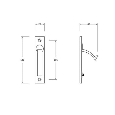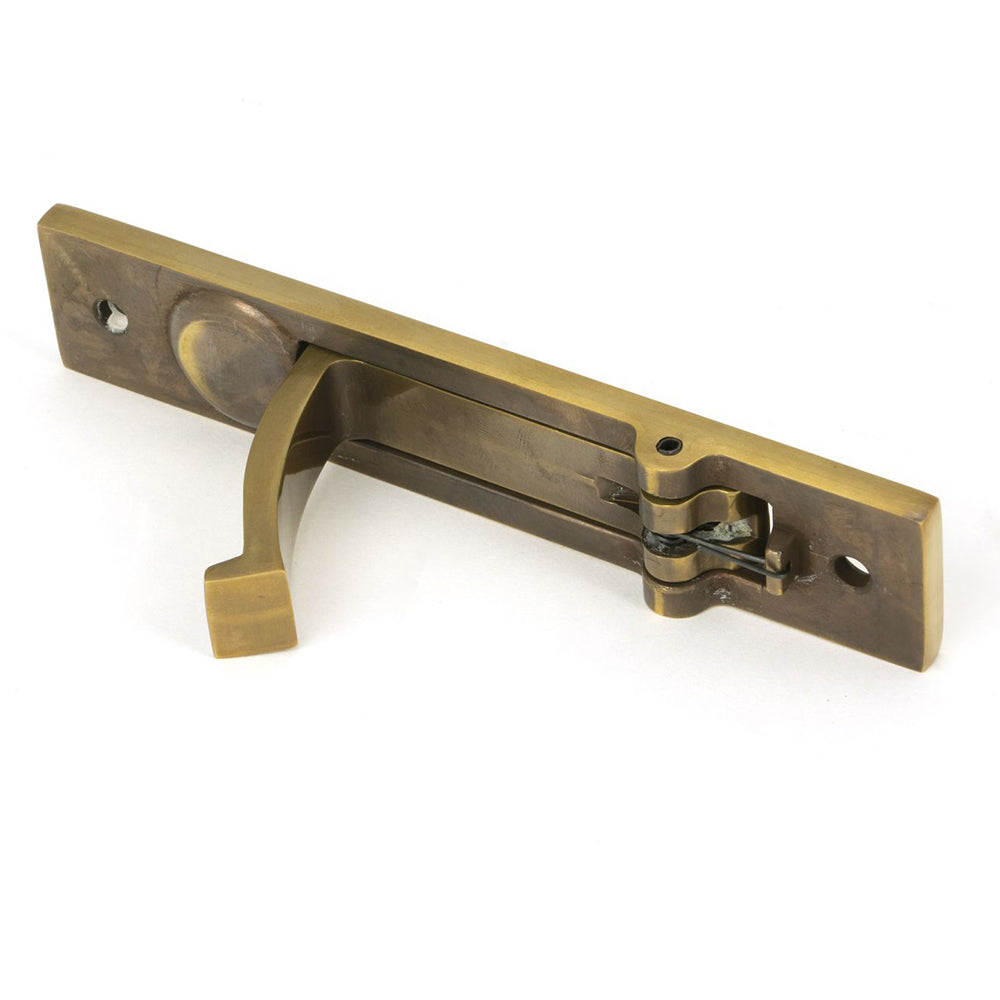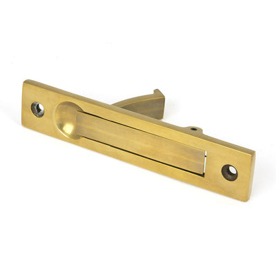 Practical door edge pull made from solid brass with an antiqued finish, polished to the surface with a darkened appearance to the indents. Designed to be morticed into the edge of a sliding or pocket door. The finger pull is on a small spring so it simply retracts back in order for the door to close properly. Sold singularly. Beautifully reassuring to use.