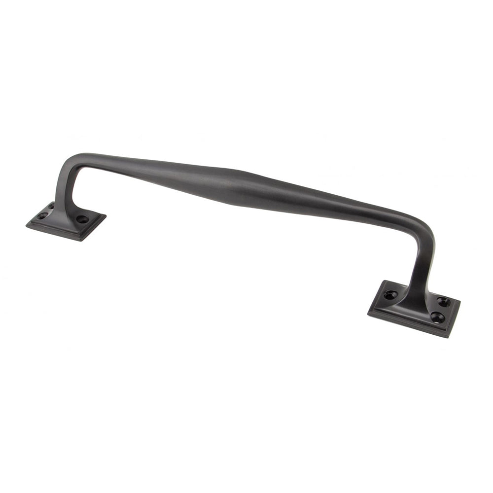 Solid and weighty aged bronze pull handle designed in an Art Deco style. A high quality large door handle that would make a statement on larger or commercial doors such as hotel lobbies, shops and entranceways.