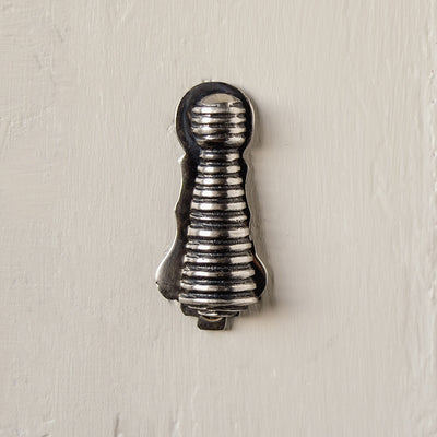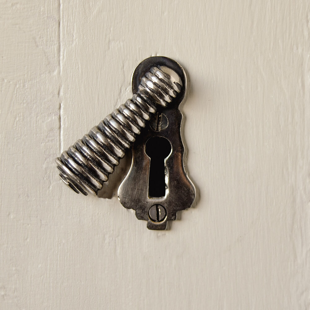 This beehive escutcheon has an aged nickel finish which highlights the reeded detail. The beehive design can be seen in many of products and was highly popular in the Victorian era.