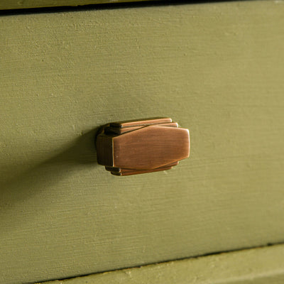 A beautiful art deco style cupboard knob which is hand made in the UK from solid brass. The antique brass finish is similar to our distressed antique brass but is much smoother finish without the distressed effect. Available in 2 sizes.