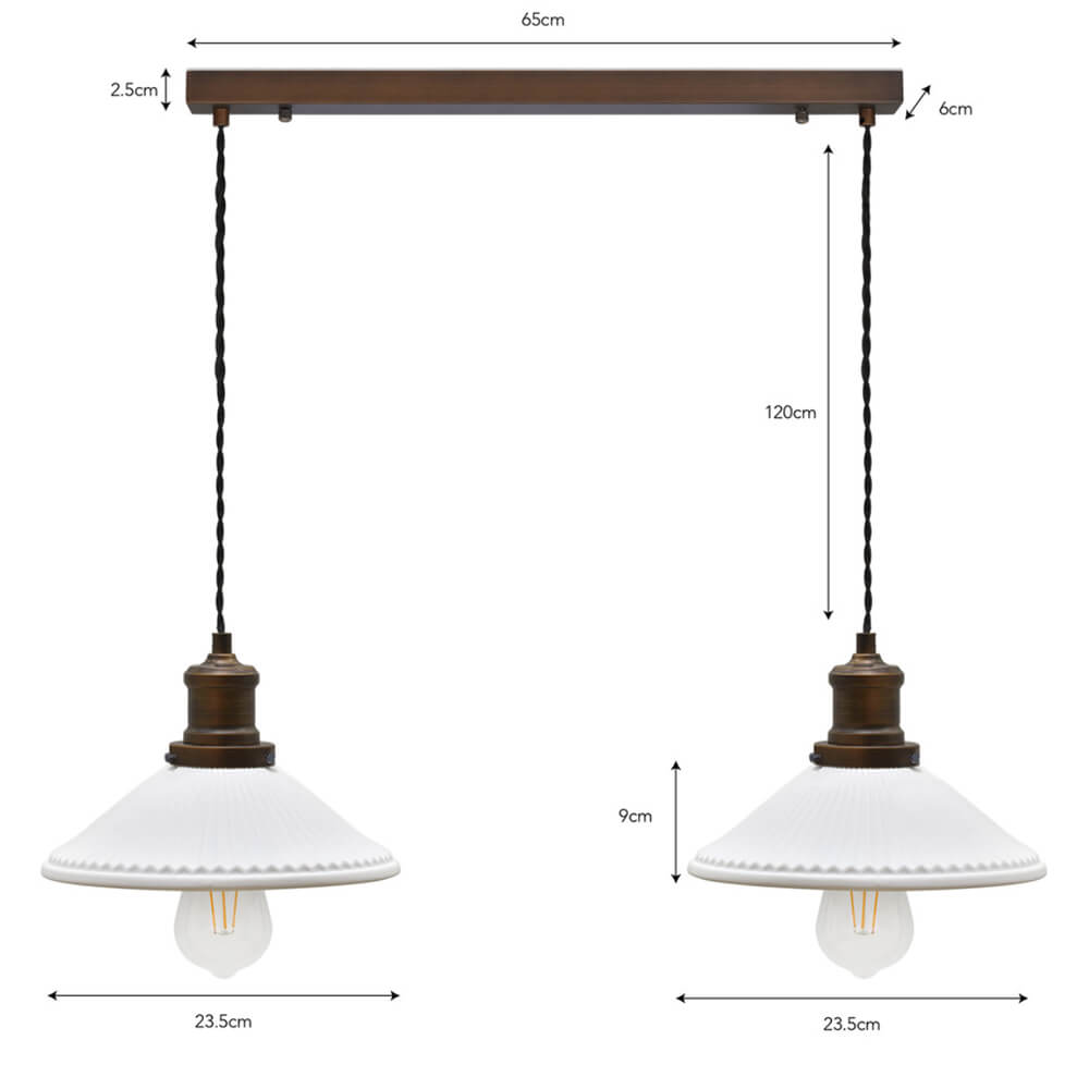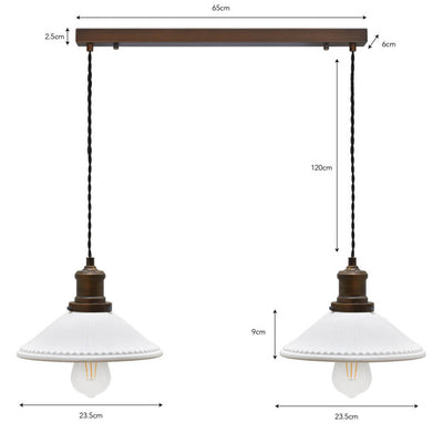 Antique-Bronze-&-Ceramic-Beaulieu-Double-Fluted-Cone-Pendant-Light-dimensions