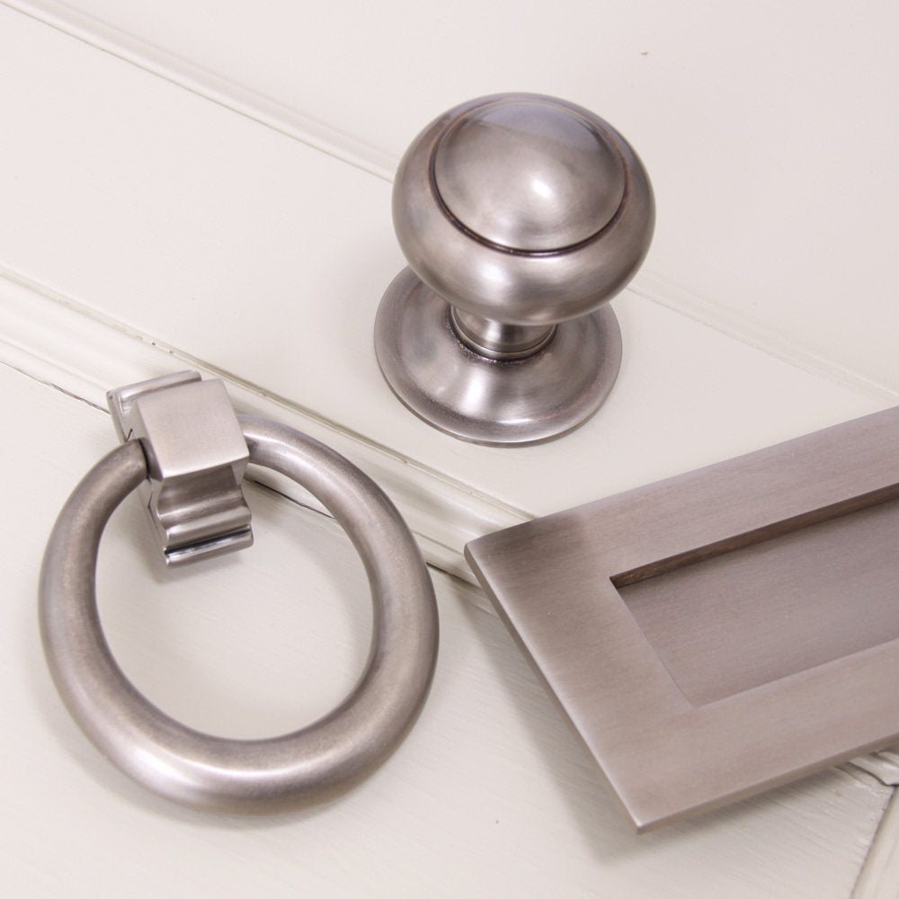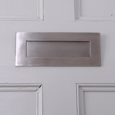 Lovely solid brass letterplate in an antique nickel finish. This letter box is hand made and finished in the UK. To create the antique finish it has been oxidized with a protective lacquer to give a rich deep aged effect.