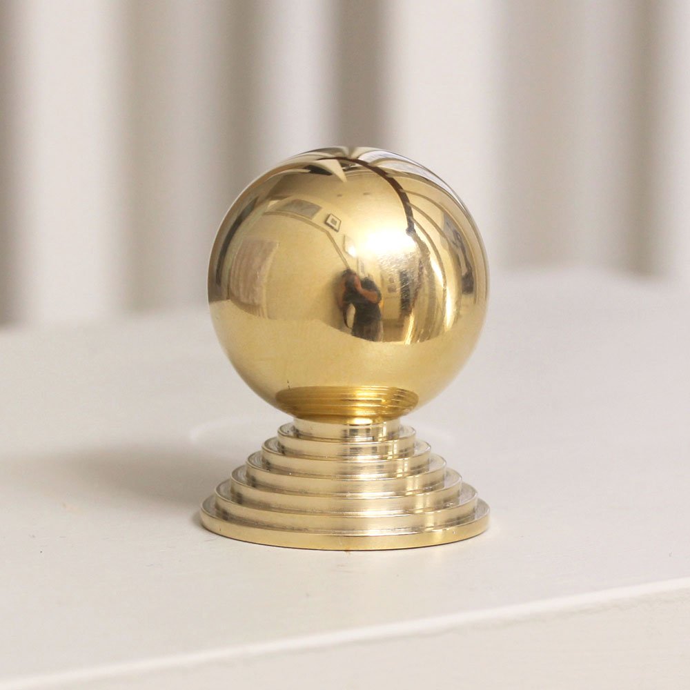 Stunning solid brass cabinet knob in an Art Deco style with stepped reeded detailing to the backplate. A lovely weighty cupboard knob that is hand made in the UK using traditional techniques.