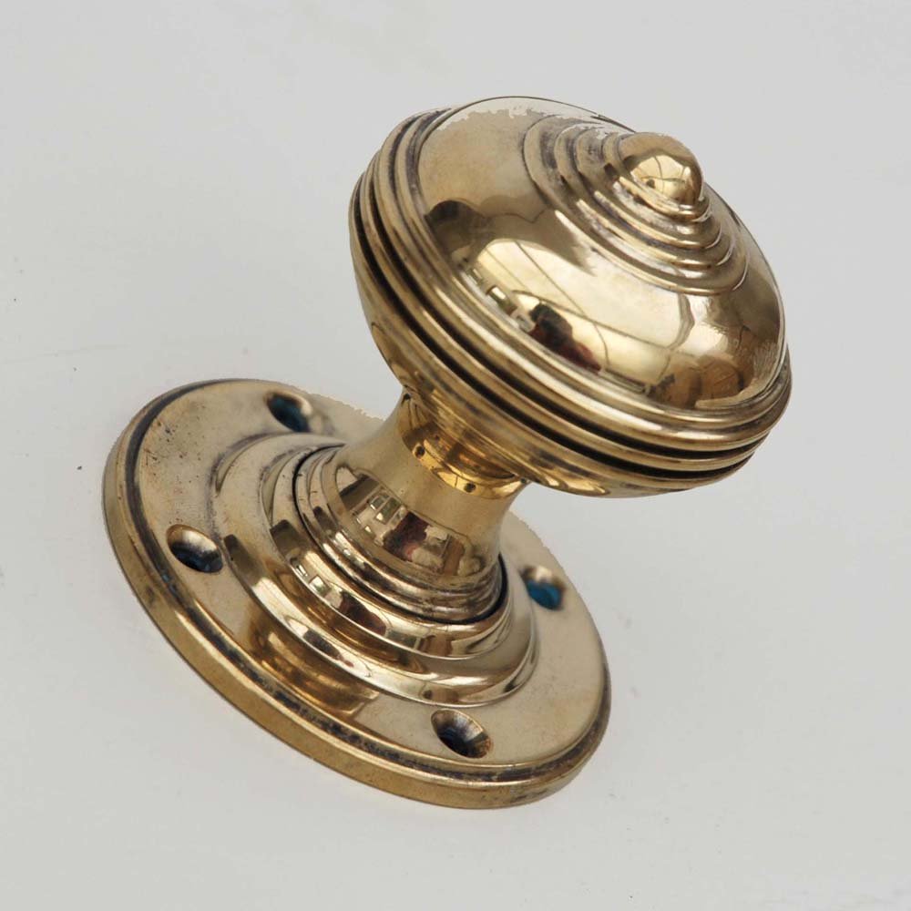 A pair of lovely authentic polished brass door knobs replicating a classic Georgian original. This beautifully weighty handle has a slightly aged, unlaquered finish making it virtually indistinguishable from the antique original.