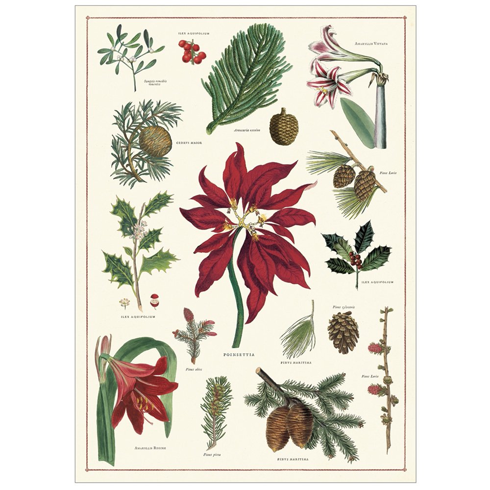 This gorgeous Christmas wrap features an array of plants and flowers in lovely red and green colours. Each plant has its name written underneath in Latin. They are great to use as wrapping paper or to hang up as a poster. Simply frame in our wooden poster hangers.