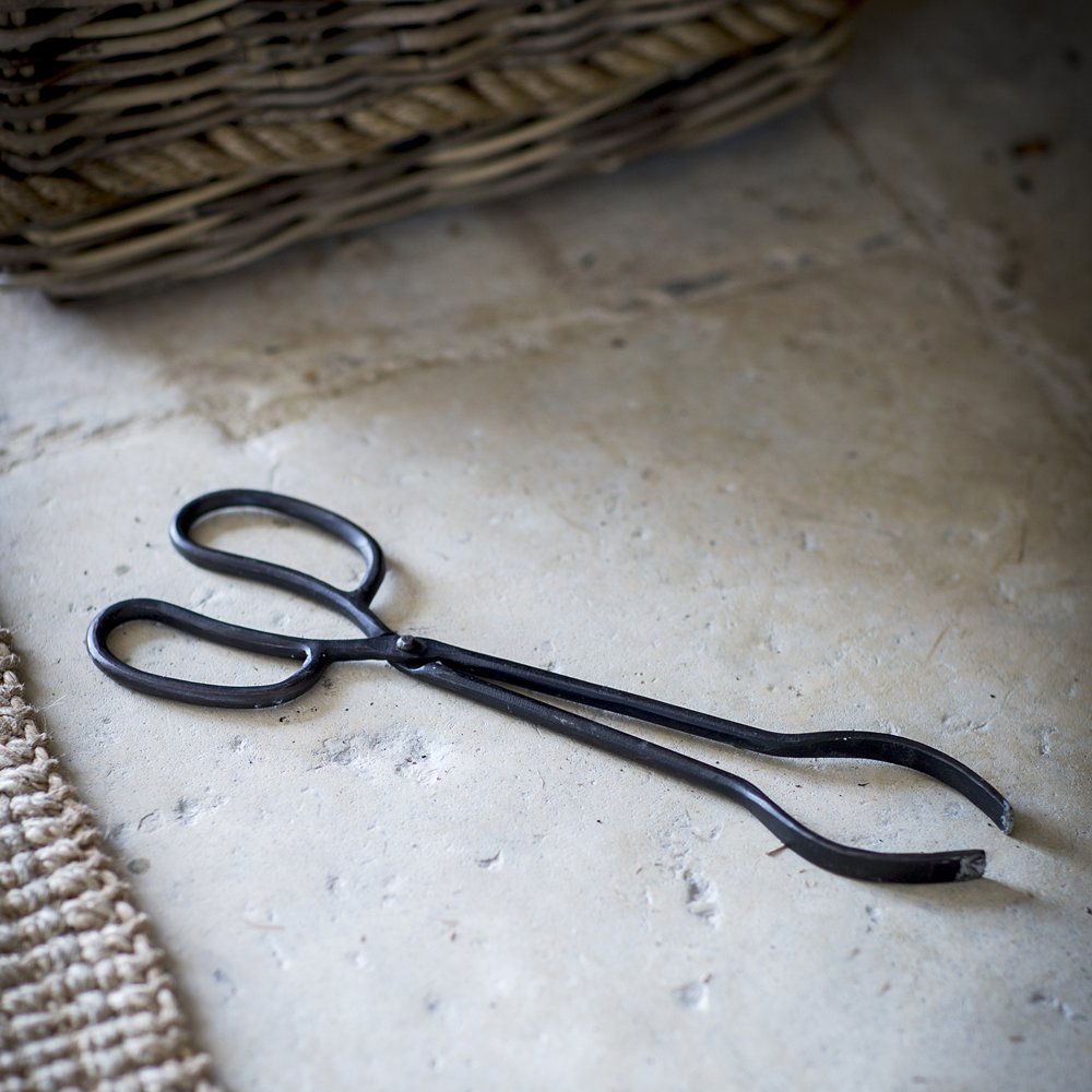 A lovely pair of iron coal tongs. Traditional Design and very useful to keep at the fireside.