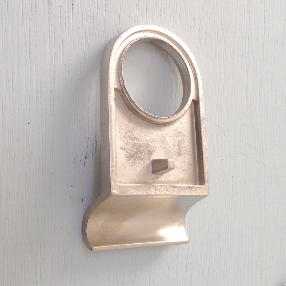 A neat surround for a cylinder latch. Complete with pull beneath to enable you to pull the door closed. This simple design that slots onto the door behind the cylinder latch or Yale lock.