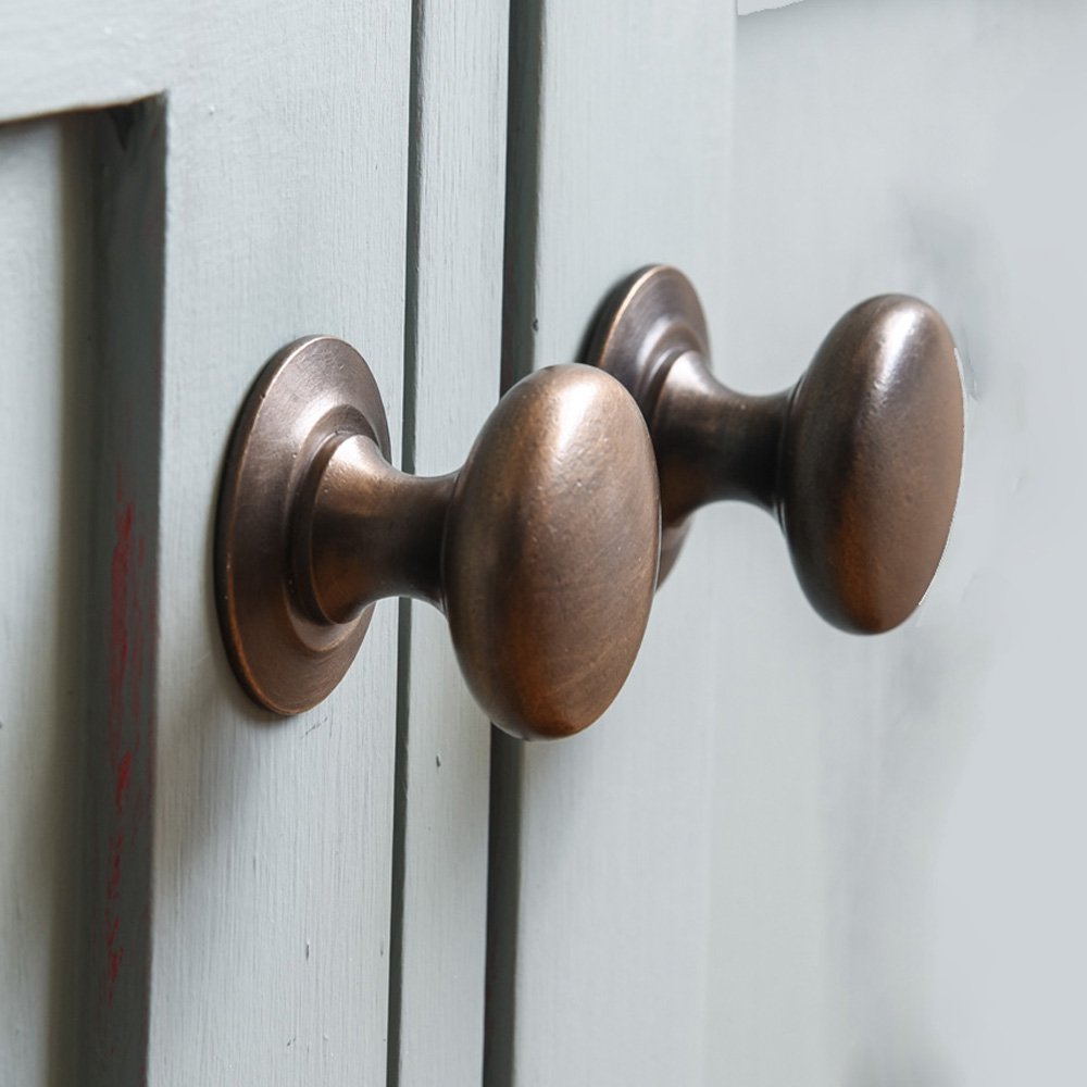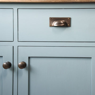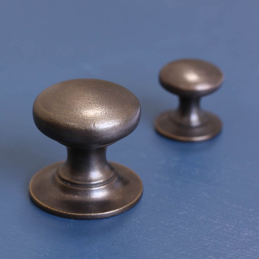 A weighty solid unlaquered brass cabinet knob available in 4 sizes. Finished with a hand applied distressed antique finish, the variety of sizes make this handle particularly versatile. Excellent for use on kitchen cabinets, cupboards and drawers along with bedroom and bathroom furniture.