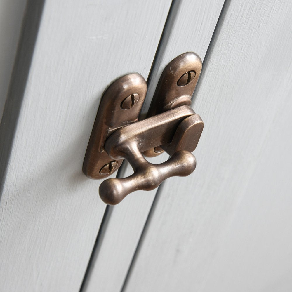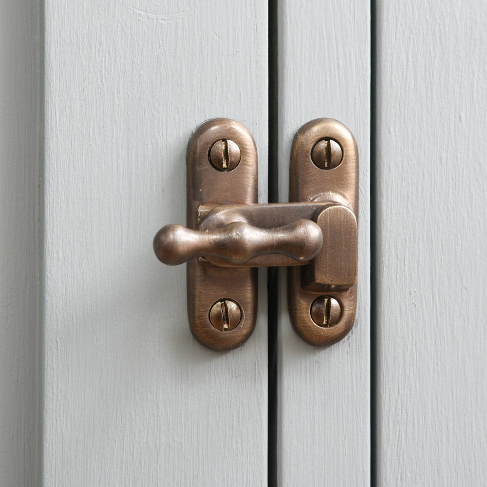 A traditional solid brass catch suitable for cabinets and cupboards. Finished in a beautiful distressed antique finish, these catches would look fantastic on a shaker style kitchen and cabinet doors. Useful on old cupboards that never seem to stay properly closed or even shutters.