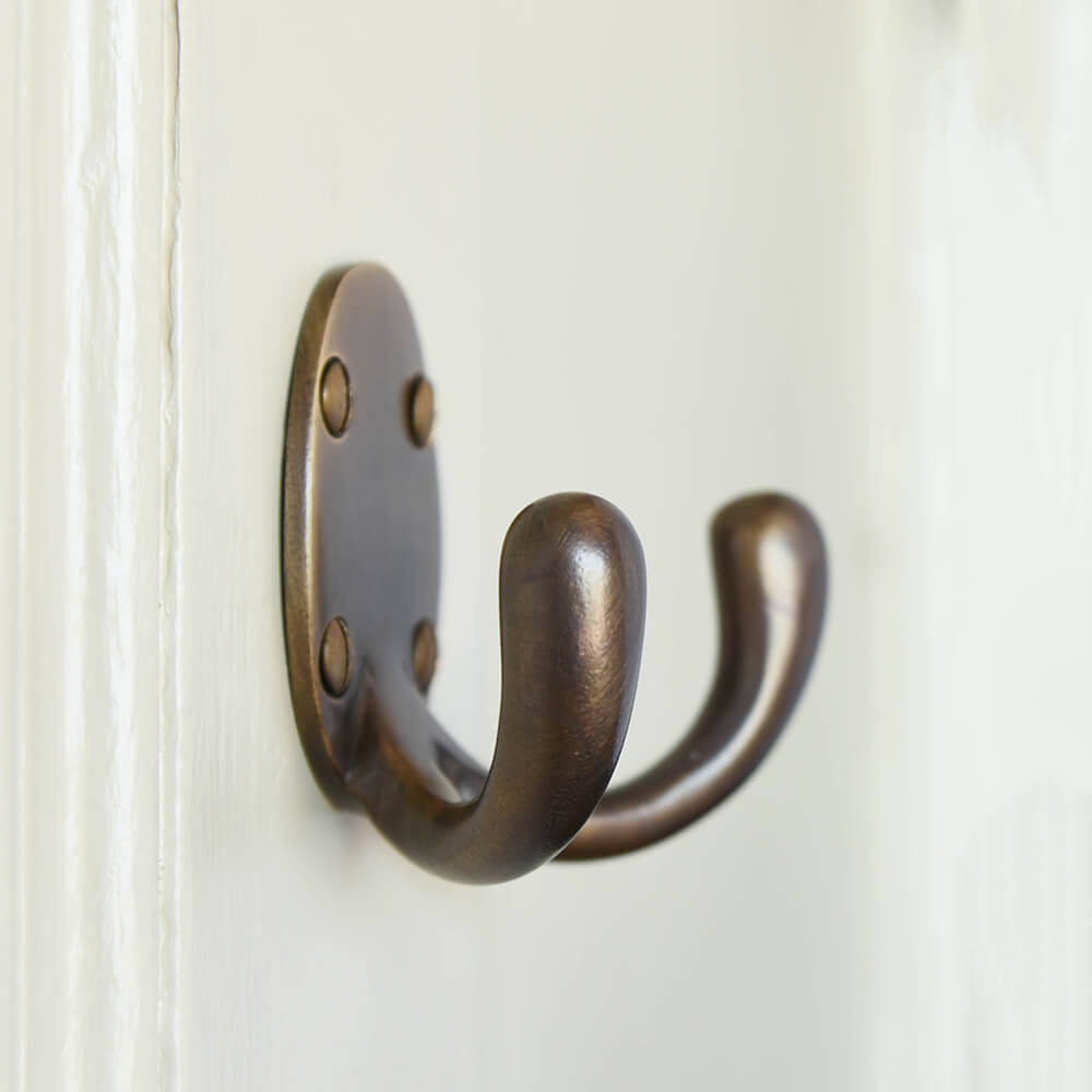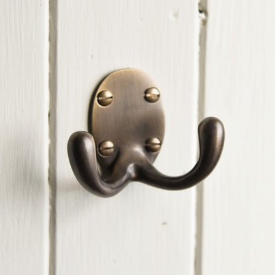Distressed Antique Brass Double Wardrobe Hook - Large