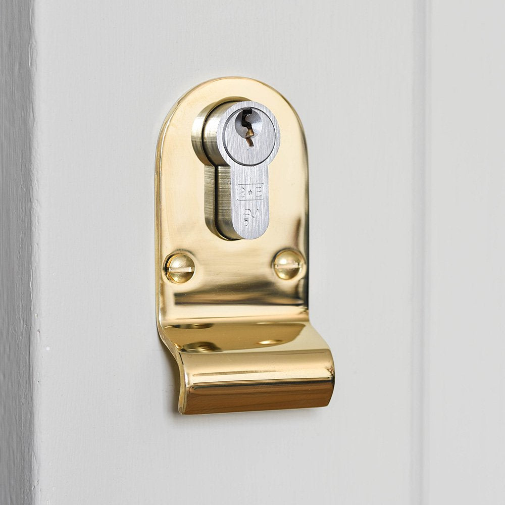 Simple cylinder latch pull that surrounded your Euro keyhole enabling you to pull the door shut behind you or assist in pushing it open. Easily fitted using two screws to secure into place. Crafted in a UK foundry from solid unlacquered brass.