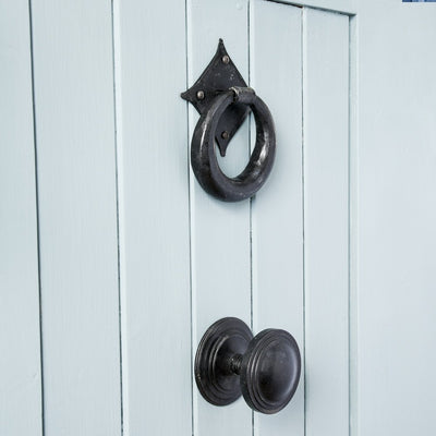 A Berkeley Door Pull fitted with a matching ring door knocker