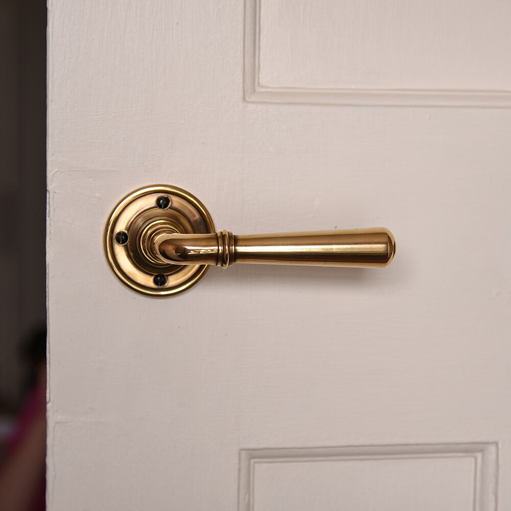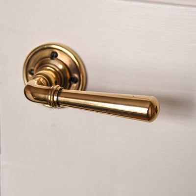 Polished Antique Brass Newbury Lever Door Handles on Rose