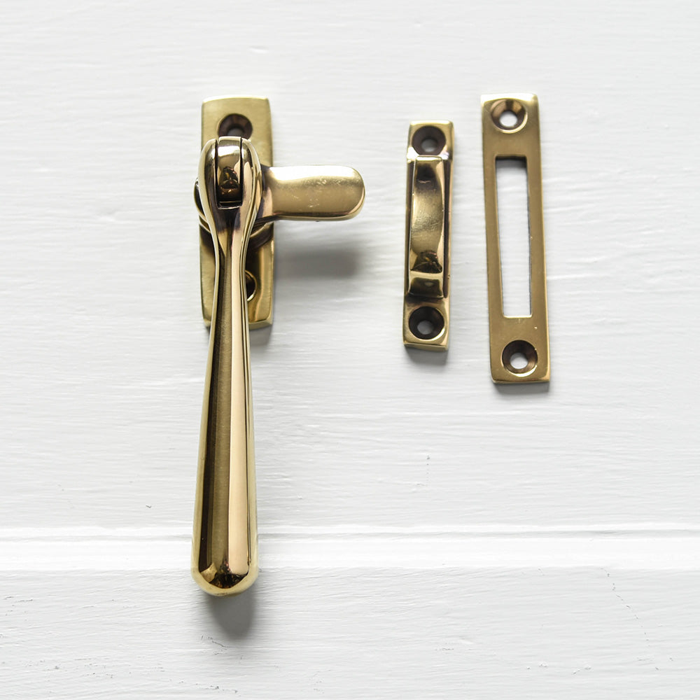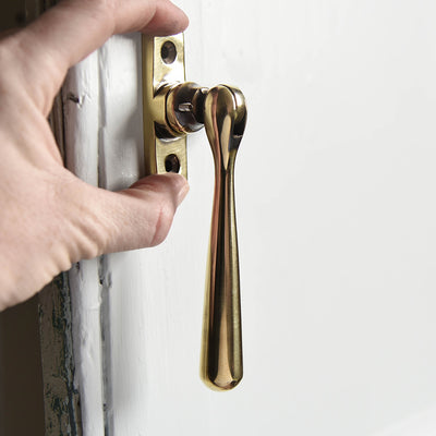 Classic window fastener that is designed for use on casement windows and is made from solid brass with an antiqued finish. The handle is reversible and comes with mortice and hook plates depending on the fitting needed.