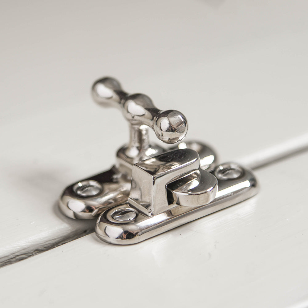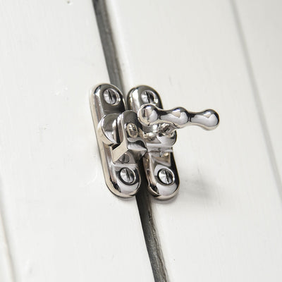 Traditional solid brass catch suitable for cabinets and cupboards with a polished nickel finish. These catches look fantastic on shaker style kitchen and cabinet doors. Useful on old cupboards that never seem to stay properly closed.