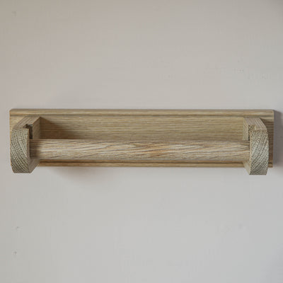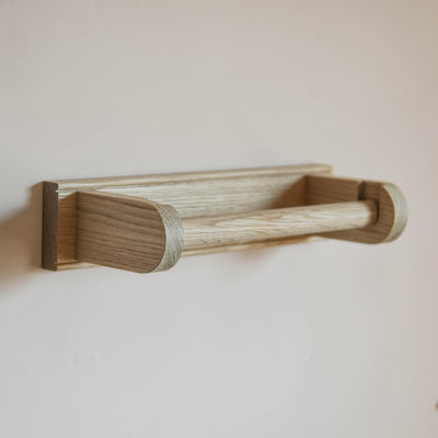 A solid oak kitchen roll holder made in the UK. The oak rod lifts out to replace kitchen roll easily. A very simple design with a slight edge detail. Has two keyhole fixings on the back for wall mounting and perfect for keeping the worktop space clear.It has also been designed to accommodate two toilet rolls so could be mounted on a bathroom or toilet wall in commercial places such as hotels, B&B's or restaurants.