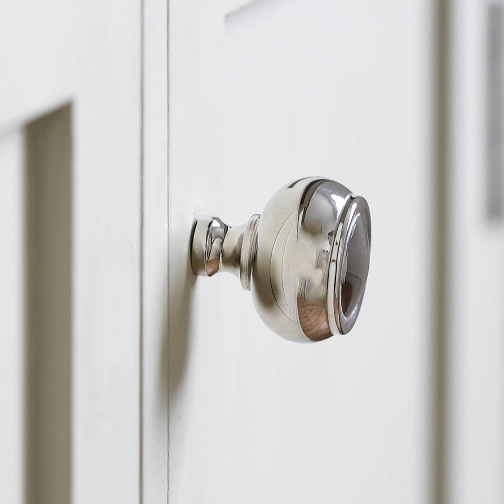 High quality cabinet handle with an elegant neck and stepped detail. Named Ovolo for its convex shape, it is crafted from solid brass and then nickel plated in a UK foundry. A stunning option for kitchens, wardrobes and cupboard doors.