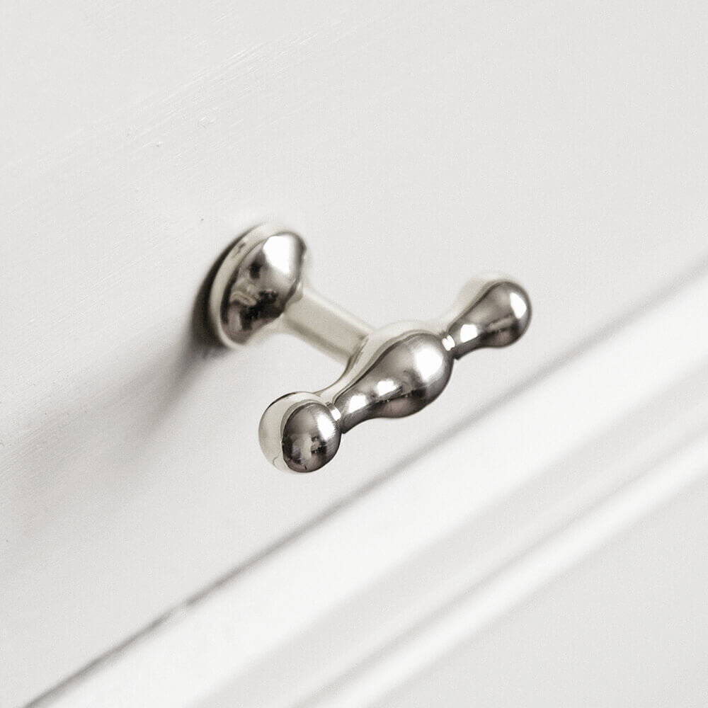 A beautiful polished nickel cabinet knob in an anchor T bar design. Made from solid brass with a nickel plated finish, this durable cupboard knob has a strong weighty feel despite its slender profile.