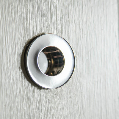 Small circular edge pull made from solid brass with a polished nickel plated finish for long lasting quality. Designed to be recessed into a pocket or sliding door to help pull it closed easily.