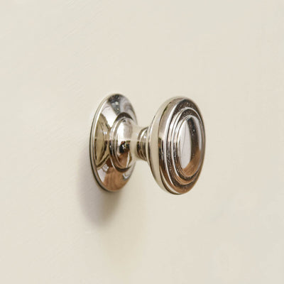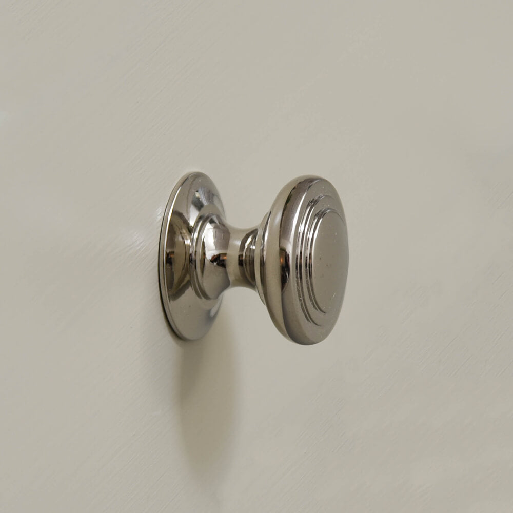 A cabinet knob with ridged detailing that has a lovely elegant feel. Made from solid brass with a nickel finish. This would suit both a contemporary or traditional setting.