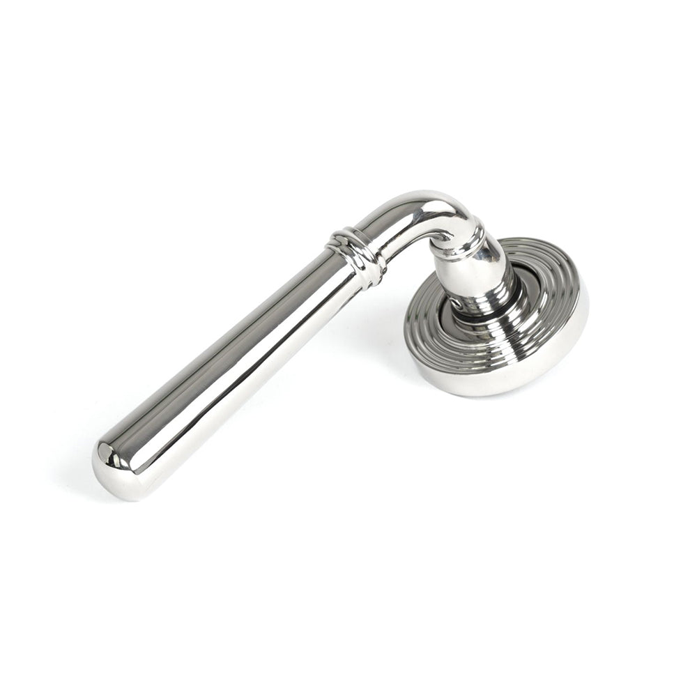 Polished Stainless Steel Newbury Lever Handles on Beehive Rose diagram