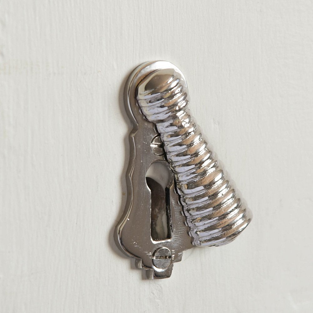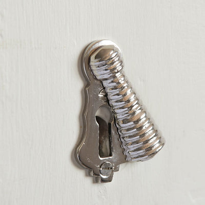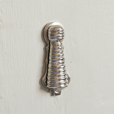 A beehive style keyhole cover. The nickel plated reeded cover sits over the plain backplate. This good sized piece will suit any of our 'Beehive' handles.