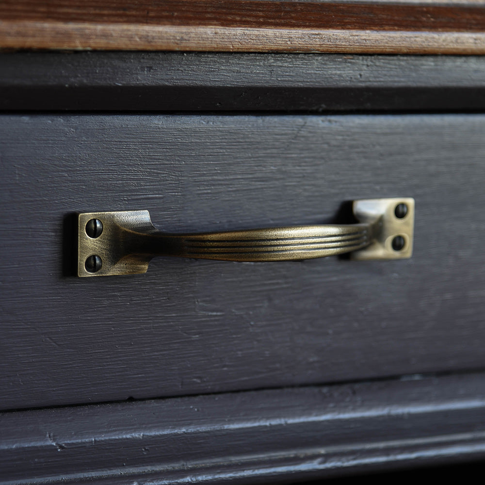 Gorgeous pull handle that is the perfect way to spruce up a set of drawers or cabinets. Hand crafted from solid brass with a distressed antique finish hand applied. The reeded detail on the drawer pull would create a lovely addition to any room. Hand made in the UK.