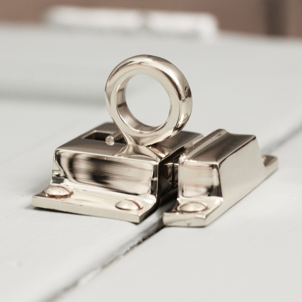A versatile sprung catch that can be used on cupboard doors, fanlights, loft hatches or windows. Great on kitchen cupboard doors or if used up high on a fanlight window you can open and close using a pole hook.