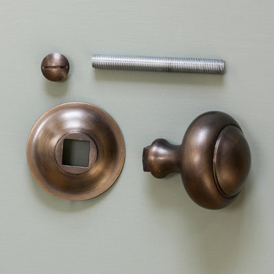 - Includes single knob, backplate, threaded bolt and matching fitting