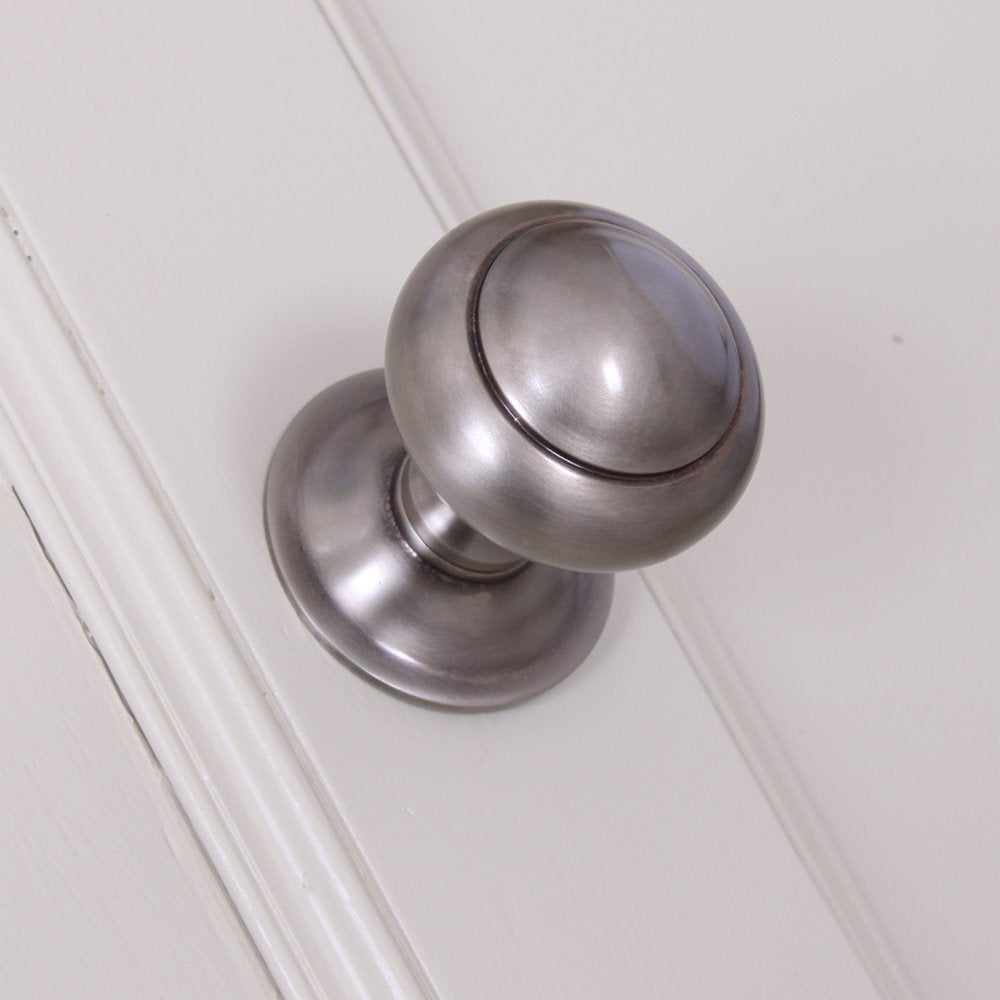 High quality door pull that will add grandeur to any entrance. Hand made from solid brass and finished in a gorgeous antique nickel, this weighty door pull is tactile to the touch with a simple circular detail on the front. Traditionally it is used in the centre of the door to pull and push the door from the outside.