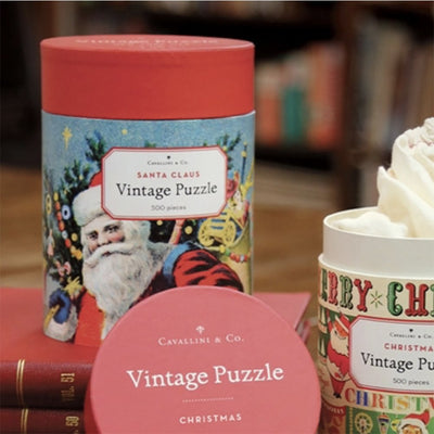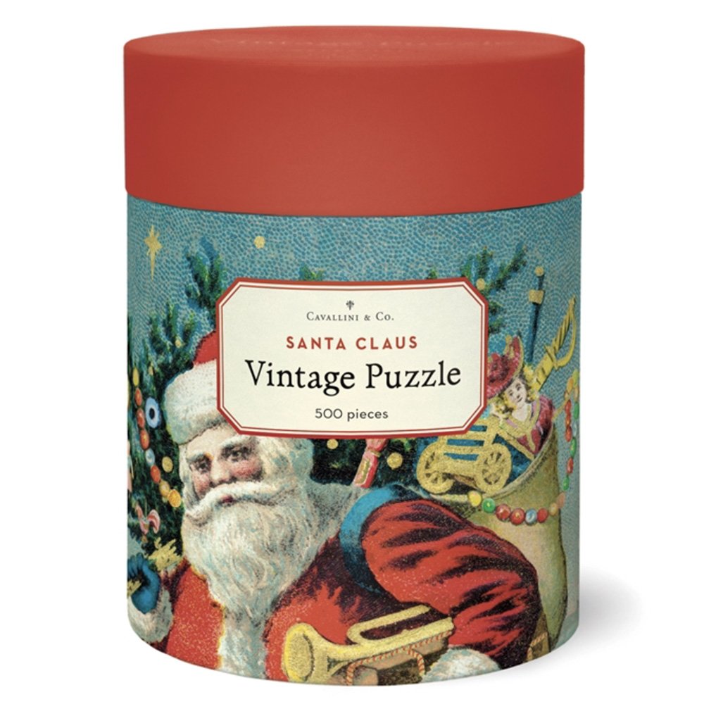 Celebrate christmas with this gorgeous Santa claus vintage jigsaw. Would make a perfect gift for christmas. The image depicts Santa carrying a variety of toys with 'A merry christmas' slogan across the top. Comes with a muslin drawstring bag to keep the pieces and a mini poster of the design.