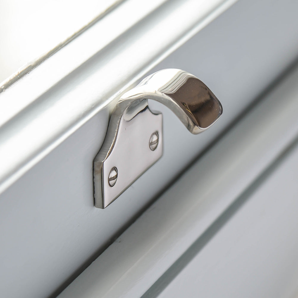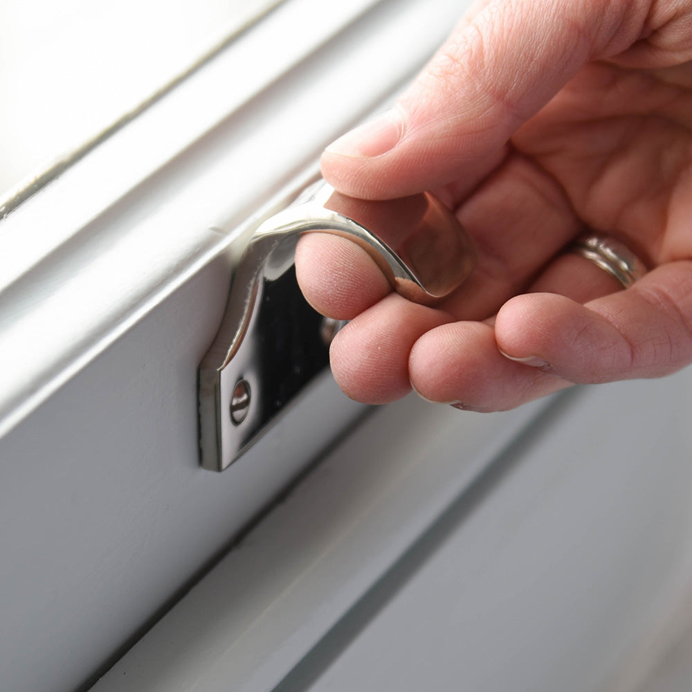Great quality sash window handle that is made from solid brass with a polished nickel finish. Perfect for helping to open and close a sash window with ease. Hand made in the UK.