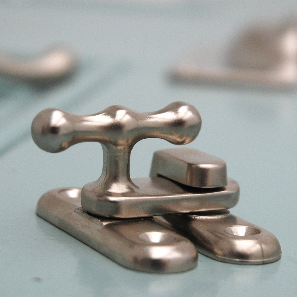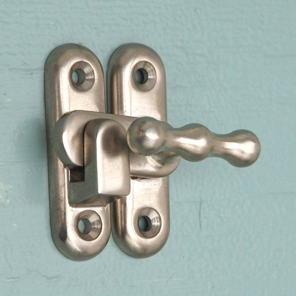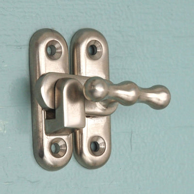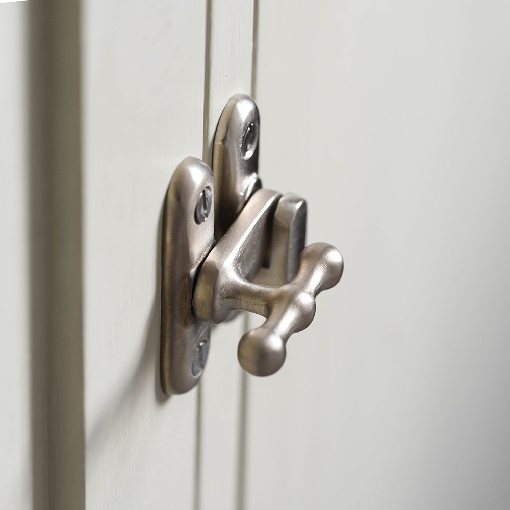 Traditional turn latch that is ideal for cabinets, cupboards or wardrobe doors. Made from solid brass with a brushed nickel plated finish. These catches look fantastic on shaker style kitchen cupboards or even window shutters.