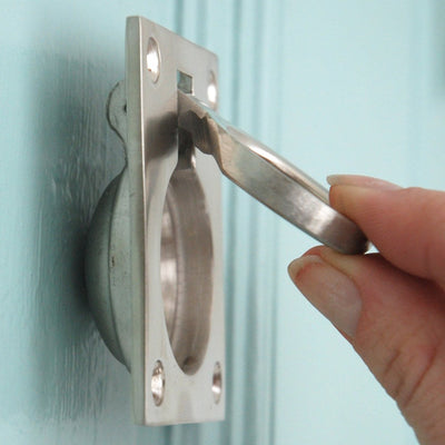 Flush ring pull handle that is made from solid brass with a brushed nickel finish. Hand crafted in the UK and comes in a variety of sizes. Being recessed it is ideal for doors, drawers and cabinets along with floor hatches and other places where flush fitting is required.