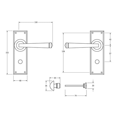 - Set includes 2 lever bathroom handles and coin and release thumbturn