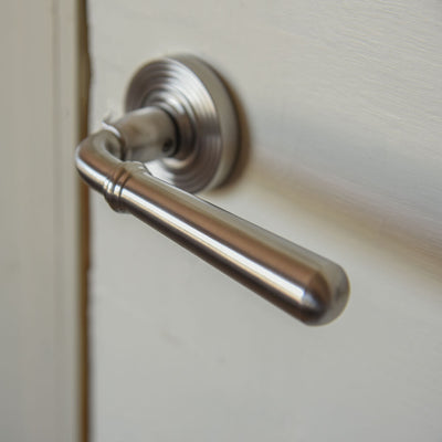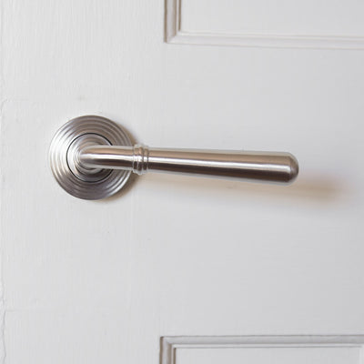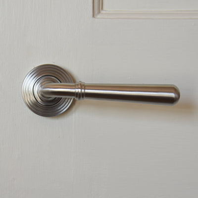 Satin Stainless Steel Newbury Lever Door Handles on Concealed Beehive Rose
